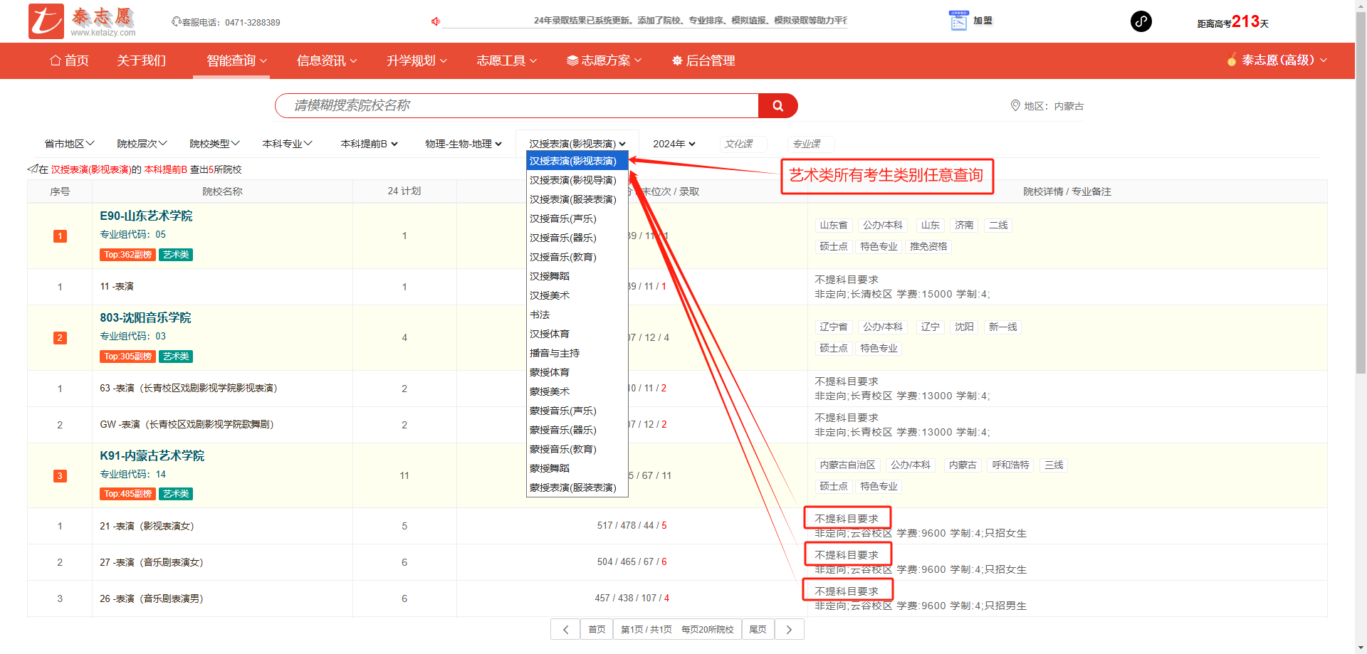 制定适合新高考艺术类的志愿方案(方案制作过程与普通类相似)。