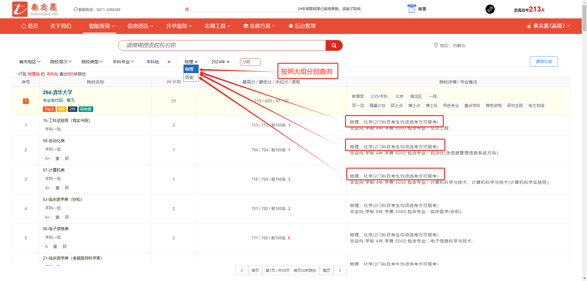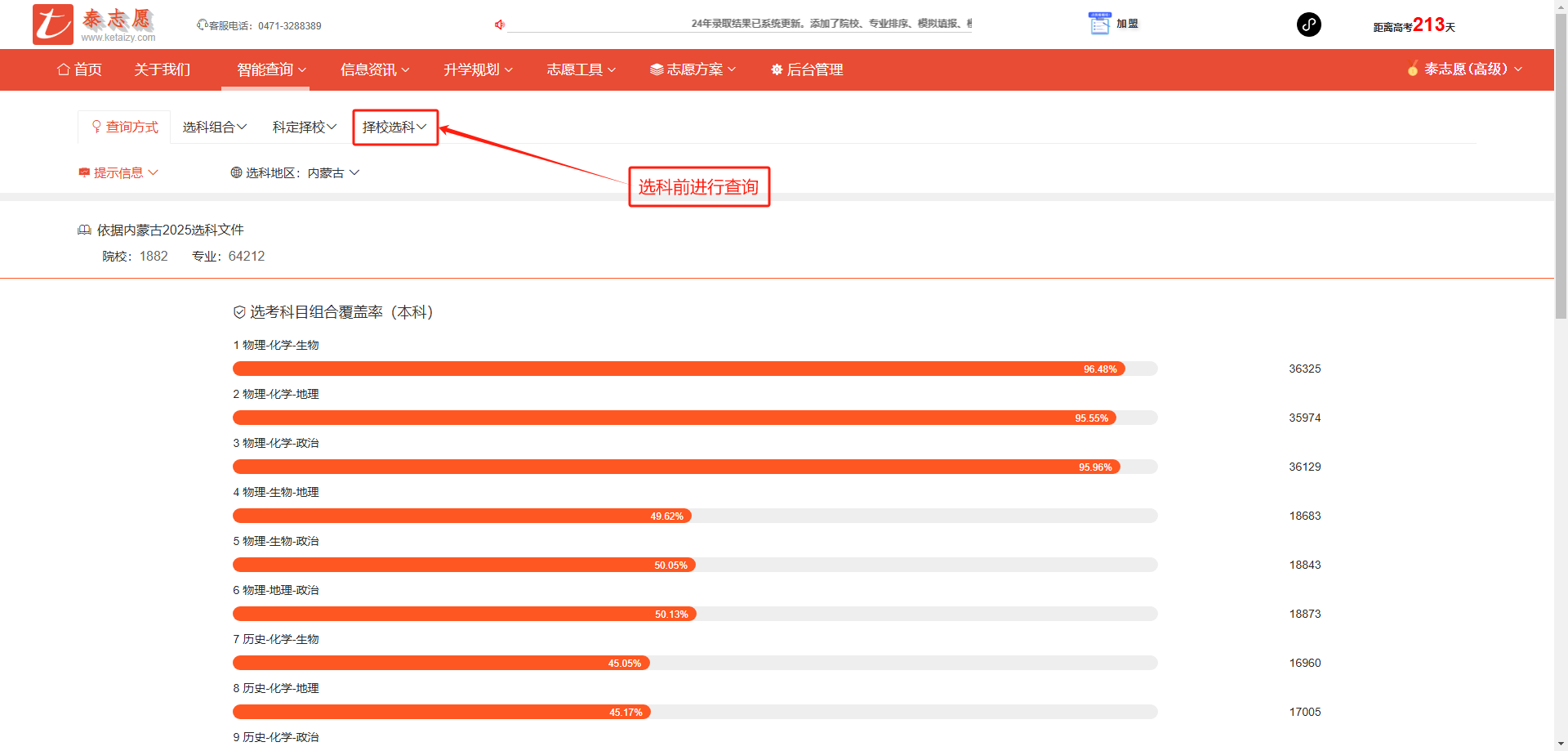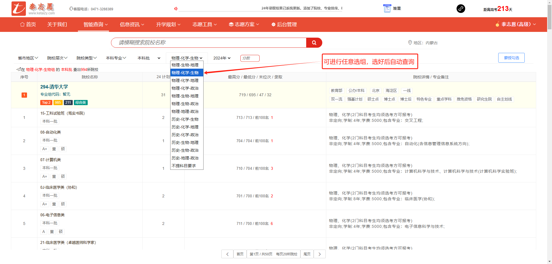 根据选科组合选择适合的学校。