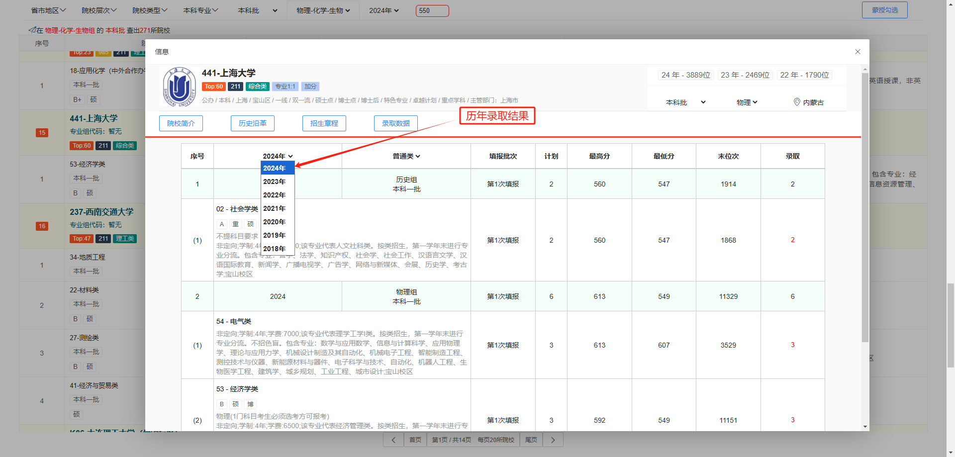 未登录状态下,只能查阅普通文理和新高考部分数据,注册时,需选择你的科类类别。