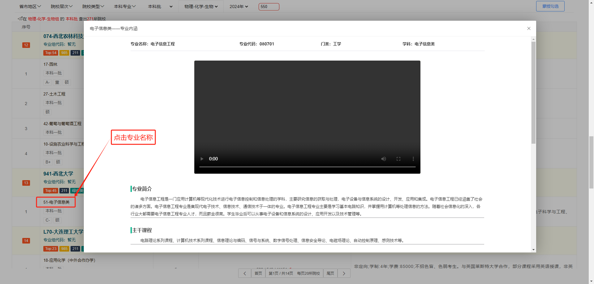在选定的学校中选择具体的科目。